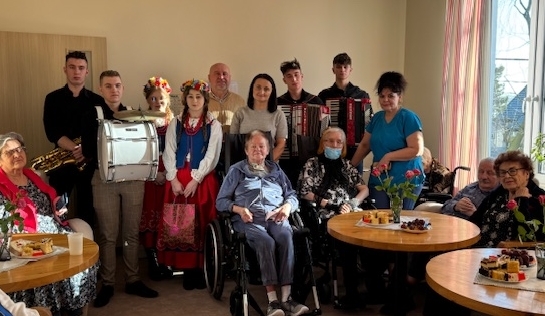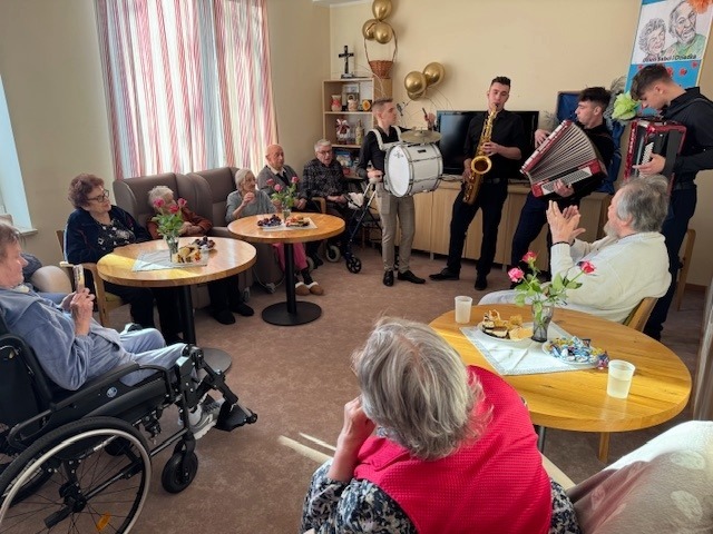 Wszystkim Babciom i Dziadkom życzymy przede wszystkim zdrowia, spokoju, pogody ducha oraz wielu powodów do uśmiechu każdego dnia. Aby złożyć te życzenia osobiście odwiedziliśmy dziś podopiecznych NZOZ Marimed w Powałkowicach. Ten wyjątkowy czas umiliły piękne melodie w wykonaniu szkolnej kapeli, które wypełniły przestrzeń ciepłem, uśmiechem i wzruszeniem. Dzień Babci i Dziadka spędzony na rozmowach i wspólnym śpiewaniu był dla wszystkich głębokim przeżyciem. Dziękujemy za tak miłe przyjęcie.
