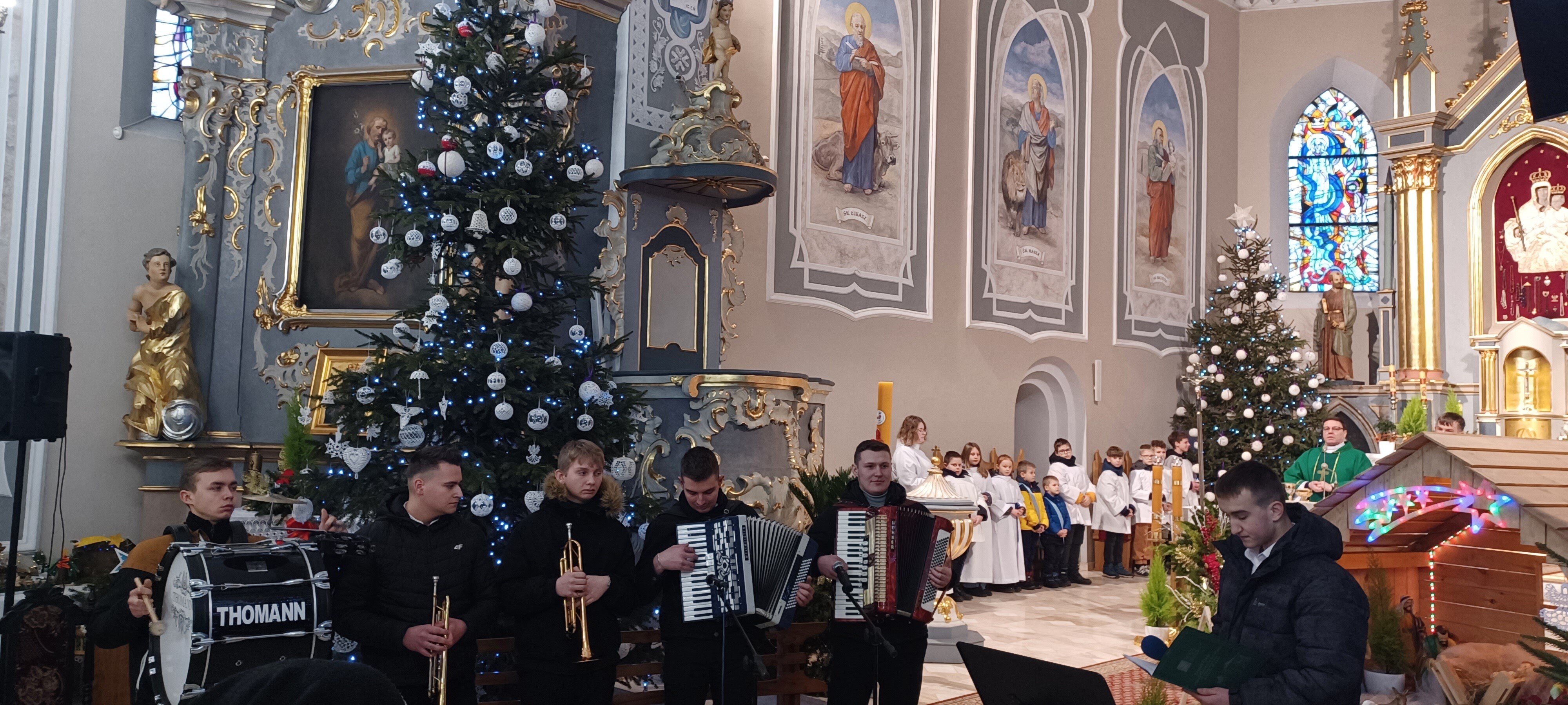 Styczeń jest miesiącem, kiedy to jeszcze przeżywamy radość z narodzin Chrystusa i śpiewamy kolędy. 25 stycznia 2026 roku starobrzeski zespół muzyczny uświetnił Mszę świętą w parafii Wniebowzięcia Najświętszej Maryi Panny w Izbicy Kujawskiej. Podczas nabożeństwa uczniowie zaprezentowali swoje pasje i zdolności artystyczne, w tym wokalne. We mszy św. wraz z Panem Dyrektorem Kazimierzem Rojewskim wzięli udział nauczyciele, wychowawcy oraz rodzice. Dziękujemy Proboszczowi Parafii w Izbicy Kujawskiej ks. Krzysztofowi Stawickiemu za życzliwość i otwarte serce.