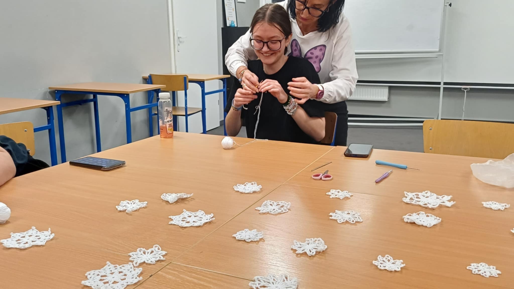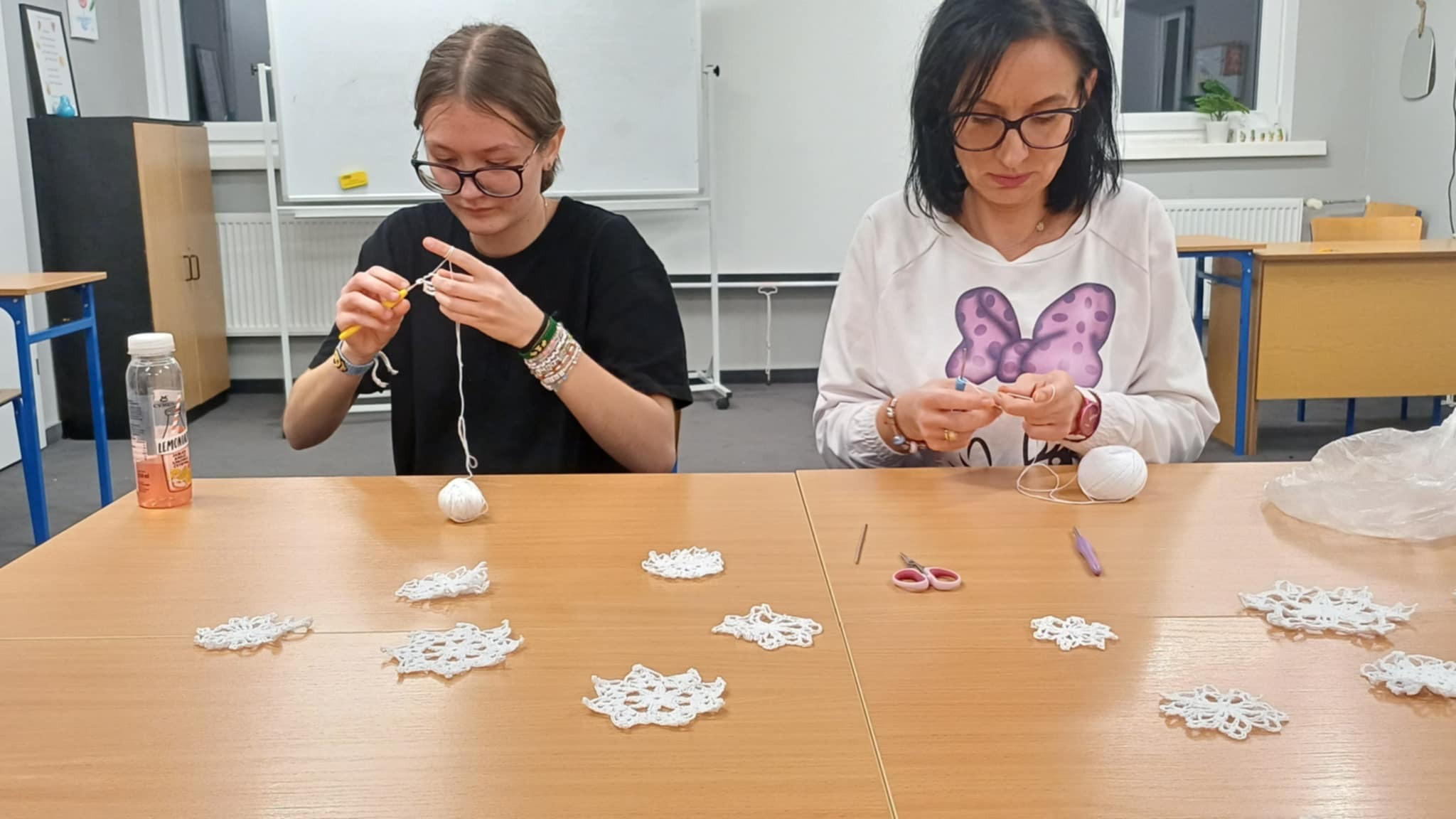 W naszym szkolnym internacie odbywają się kreatywne warsztaty pod nazwą „Szydełko i włóczka”. Uczestnicy spotkań uczą się podstaw szydełkowania, poznają różne techniki pracy z włóczką oraz rozwijają swoje umiejętności manualne i kreatywność. Spotkania przebiegają w ciepłej, twórczej atmosferze, a uczestnicy z zaangażowaniem uczą się technik szydełkowania oraz tworzenia ozdób z włóczki.