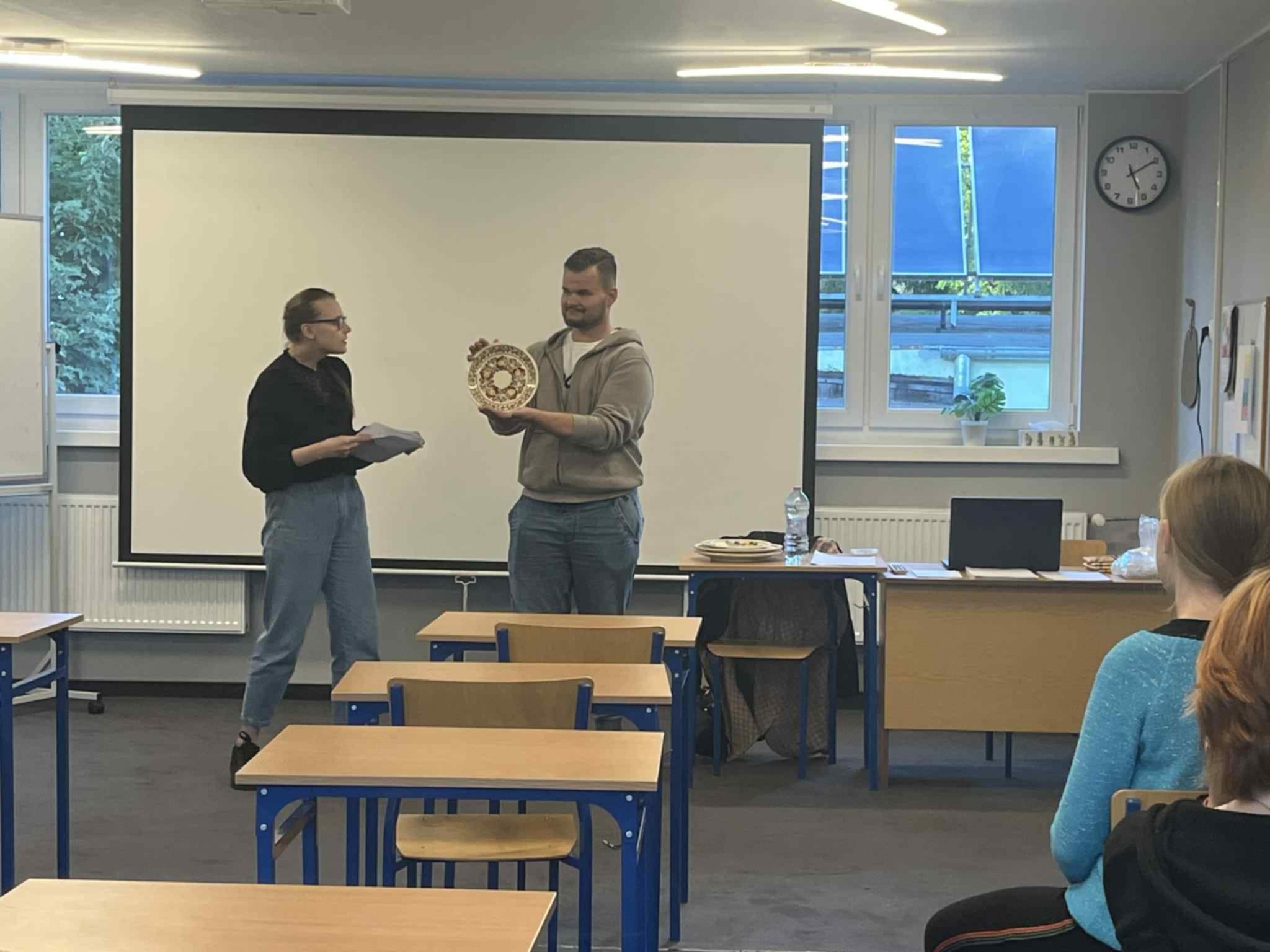 Edukacji w ramach programu Nasze tradycje. Przedsięwzięcie koncentruje się na tematyce artystyczno-regionalnej. W ramach projektu przewidzianych jest pięć spotkań dla jednej szkoły. Tematem przewodnim pierwszych warsztatów był włocławski fajans. Dziękujemy Pani Katarzynie i Panu Serwerynowi z Fundacji „Już jestem…” za realizację warsztatów.
