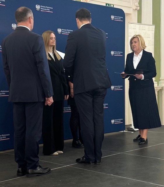 Dzisiaj w siedzibie Narodowego Instytutu Kultury i Dziedzictwa Wsi w Warszawie odbyło się uroczyste wręczenie aktów nadania wyższych stopni awansu zawodowego nauczycieli szkół prowadzonych i nadzorowanych przez Ministra Rolnictwa i Rozwoju Wsi. Z rąk Podsekretarza Stanu w MRiRW Pana Adama Nowaka, w obecności Sekretarza Stanu w MEN Pana Henryka Kiepury, po złożeniu uroczystego ślubowania p. Monika Niedośmiałek otrzymała akt nadania tytułu nauczyciela mianowanego. W uroczystości wziął udział Pan Dyrektor Kazimierz Rojewski.