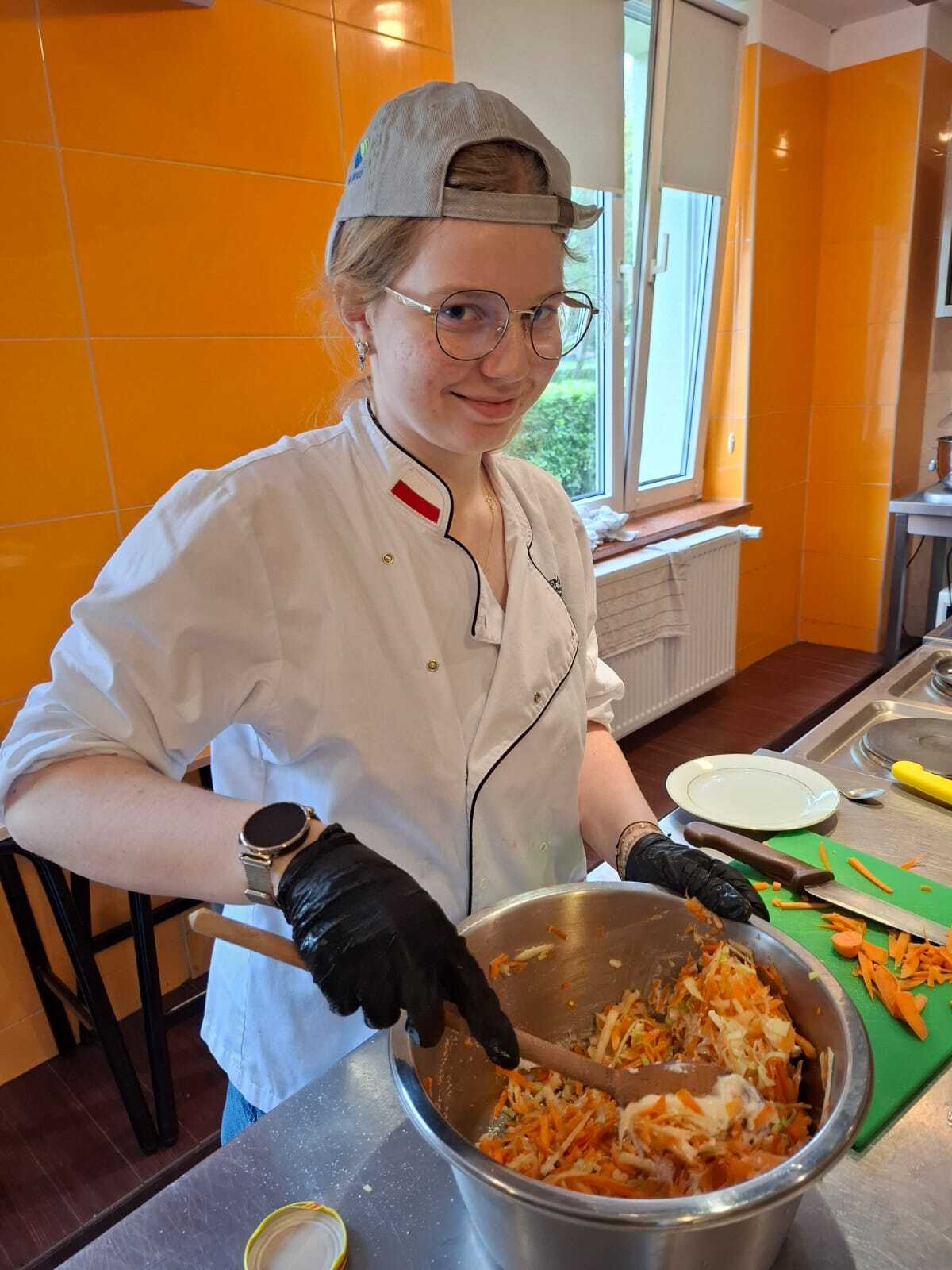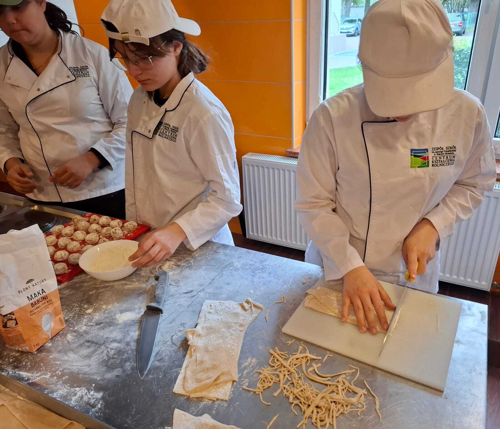 Aromat roznosił się w całej pracowni żywienia. Młodzież na zajęciach praktycznych z technologii gastronomicznej przygotowała kurczaka. Uczniowie uczyli się jak podzielić tuszkę drobiową na elementy gastronomiczne. Z uzyskanych części przygotowali pyszny rosół z własnoręcznie wykonanym makaronem. Na drugie danie serwowano faszerowane skrzydełka oraz pulpety z sosem w asyście ziemniaków puree. Zobaczcie sami!
